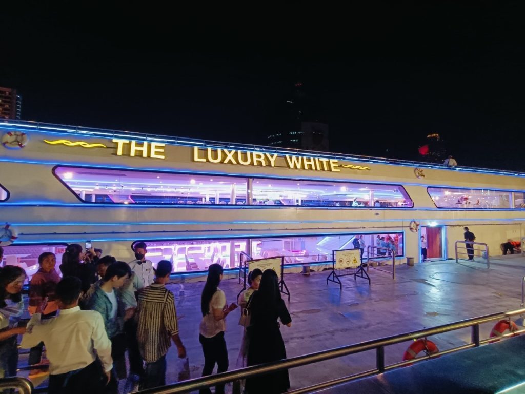 เรือ The Luxury White Cruise เดอะ ลักซูรี่ ไวท์ ครูซส์ ล่องเรือดินเนอร์ เจ้าพระยา เรือหรู 3 ชั้น ลำใหม่ล่าสุด! สุดหรูมีระดับ ล่องเรือชมวิวสองฝั่งแม่น้ำเจ้าพระยา บุฟเฟ่ต์นานาชาติ ซีฟู้ด เครื่องดื่มฟรี น้ำเปล่า +ชา และกาแฟ น้ำอัดลม ไวน์แดง และ ไวน์ขาว การแสดงดนตรีสด รำไทย คาบาเร่โชว์